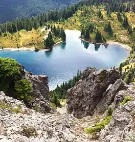 Eunice Lake is a glacial lake located in Pierce County, Washington and in the northwest part of Mount Rainier National Park. The lake was named after Eunice Sargent Roth by her husband Andy (Adolph) Roth who grew up in Washogal and was active in the forest service for many years. The lake is a popular area for hiking.[2]