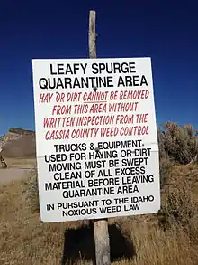 Leafy spurge quarantine sign at the Idaho state line