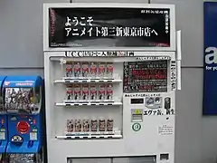The Angels were partly made in 3D CGI and partly hand-drawn, as in the case of Shamshiel's whips.[9] Other sequences, such as the one in which the Eva units are transported by trains, required precision in the movements and were instead made in 3D.[58] Other staff members also intervened in the process. Honda was responsible for the cut in which the Eva-01 is framed seizing the Positron Rifle, and had trouble drawing it. The framing was eventually done by hand; according to Honda 3D would have been boring, while hand-drawing, by nature less accurate, allowed to give "some unexpected false information".[17] The Gatling gun was made by Kazuya Kise;[58] Tomoko Masuda, on the other hand, was assigned to oversee the 2D digital work. Masuda, who had previously been in charge of matte painting the live-action films and had worked with Higuchi on Sinking of Japan (2006), was tasked with producing the logos and legible lettering on signs, drinks and other visible objects in the film; he produced imaginary company logos mixed with some existing ones, along with barcodes and car license plates.[80][81] He used Adobe Illustrator for outlining and output, then used Photoshop and After Effects for corrections in the process.[82] At the end of July 2006, during the final stages of production, the staff observed and corrected any errors in the animations, with whoever pointed out the error then having to take responsibility, fixing the wrong drawings themselves.[83] The work of the digital department was delivered at the end, after everyone else had finished.[84]