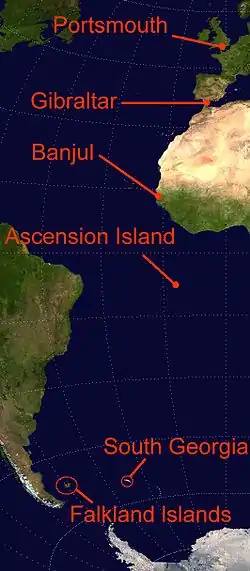 - ↑ Daniel K. Gibran (1998). The Falklands War: Britain Versus the Past in the South Atlantic. McFarland. p. 92. ISBN 078640406X.