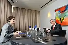 Since becoming a Member of the European Parliament following the 2019 European elections, Kopacz has been serving as one of its Vice-Presidents; in this capacity, she has been part of the Parliament's leadership under Presidents David Sassoli (2019–2022) and Roberta Metsola (since 2022).[15] Within the centre-right European People's Party Group (EPP), she is part of the leadership team around chairman Manfred Weber.[16] She later also joined the Special Committee on Beating Cancer (2020)[17] and the Special Committee on the COVID-19 pandemic (2022).[18][19]