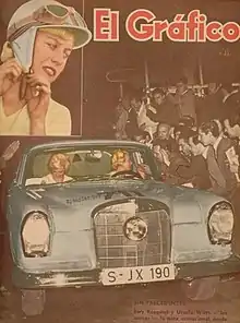 In 1962, Ewy Rosqvist successfully participated in the Argentine Turismo Standard Grand Prix (as the first female[5]), she drove a large (2 ton[1]) Mercedes-Benz 220 SE with Ursula Wirth co-driving. The duo won all six stages[5] and also set a new speed record for the race. In 1961 the average speed of the winner was 121 km/h, Rosqvist's average in 1962 was almost 127 km/h.[1]