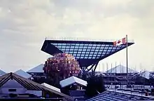 • Canadian Pavilion - The distinctive building in the form of a large inverted pyramid called the Katimavik, which is the Inuit word for "Gathering Place". The pavilion was located on a 30,285 sq metre lot and designed by Roderick Robbie, Colin Vaughan, Paul Schoeler and Matt Stankiewicz, with consulting architects Evans St. Gelais and Arthur Erickson. The major attractions in the building included a rotating cinema.
