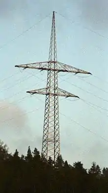 The Eyachtal Span is the crossing of the Eyach valley with a 110 kV line in Neuenbürg and Höfen an der Enz in the Black Forest in Germany. The Eyachtal Span was built in 1992. With a span of 1444 metres, it is the greatest span of a power line in Germany. The pylons on which the Eyach Span is fixed are 70 metres high and located on Heuberg and Eiberg.