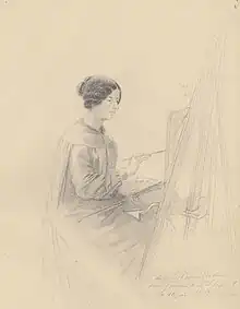 Félicie Schneider at her easel, drawn by her studiomate Maria Röhl in Léon Cogniet's studio, Paris, 16 June 1853