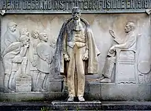 Monument to Henri Legrand Valenciennes Nord Desruelles' work celebrates the life of the teacher Henri Legrand who was executed by the Germans during the 1914-1918 war. It stands in the avenue Villars and was inaugurated on 22 July 1928. Legrand had been accused of treason and espionage and of passing military secrets to the Allies by carrier pigeon. He was arrested at the school in the rue des Capucins where he taught, kept in prison for several months and then shot. Legrand stands in front of a bas-relief which shows a group of students listening to their teacher. The bas-relief carries the inscription "Se dévouer pour la Patrie" ("They devoted themselves to serving the Motherland"). The monument is located in the Avenue Villars.