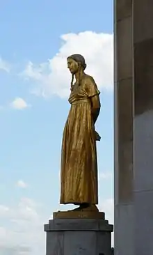 Paris This gilded bronze is one of the statues on the Esplanade of the Trocadéro (Parvis des droits de l'homme).[14]