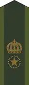 For promotion to Förvaltare, 16 years time-in-service, and a minimum of four years time-in-grade as Fanjunkare is required, as well as HSOU (Sergeant Majors Academy).[1] A Förvaltare has the same relative rank as a Kapten.[2]