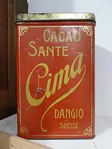 The Fabbrica di Cioccolato Cima Norma S.A., also Chocolat Cima-Norma S.A., in Torre-Dangio (today Blenio municipality) was an industrial chocolate production company in the canton of Ticino. It was founded in 1903 by the Cima brothers. It went bankrupt in 1968.[1] The company Cima Norma S.A. also stands for the economic development and modernization advancement goal from the beginning of the 20th century for the mountain valley Blenio Valley, which was classified as a peripheral region.[2]