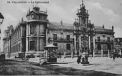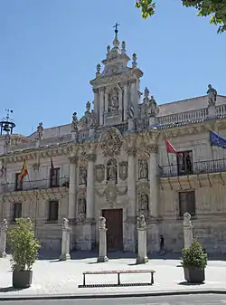 The façade of the University of Valladolid of Spain was built between 1716 and 1718 in the Baroque style. The architect Fray Pedro de la Visitacion supervised the construction. The façade was part of a project to enlarge the buildings of the university.