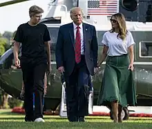 The family of Donald Trump, 45th president of the United States (20172021) and owner of The Trump Organization, is a prominent American family of German and Scottish descent.[1] They are active in business, entertainment, politics, and real estate. Donald Trump, his third wife Melania, and their son Barron were the first family for the duration of his presidency. Trump's father Fred was the son of German immigrants, while his mother Mary Anne MacLeod was a Scottish immigrant. Trump has five children from three wives and ten grandchildren.
