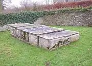 In the graveyard to the northeast of the meeting house are five joined chest tombs to the Myers family dated between 1687 and 1737. They are designated as a Grade II listed building.[3] This style of tomb is unusual in Quaker burial grounds as it was considered to be ostentatious and was later discouraged by the movement.[2]