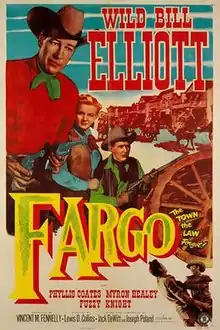 Fargo is a 1952 American Western film directed by Lewis D. Collins and starring Wild Bill Elliott, Myron Healey and Phyllis Coates.[1] The film's sets were designed by the art director Dave Milton. It was shot at the Iverson Ranch.