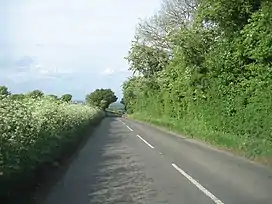 ![]() Road at the summit of Farleigh Hill as it begins to descend into Cliddesden | |