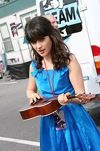 Zooey Deschanel wearing 1960s inspired Boho-chic, dress in 2008.