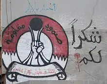 Coalition Youth of 14 Feb Revolution (Arabic: إئتلاف شباب ثورة 14 فبراير), sometimes called The Coalition (Arabic: الإئتلاف) is a Bahraini youth group, named after the date of the beginning of Bahrain's uprising, and led by anonymous individuals who organize protests chiefly via new-media sites.[1] The Coalition first appeared on the popular pro-democracy forum Bahrain Online.[1] Their Facebook page started in April 2011 where they have 65,282 likes (as of July 2014).[2] It is the main Facebook page that calls for daily peaceful demonstrations and protests.[3] One of the first sub-groups called February 14 Youth was behind the call for demonstrations on February 14, 2011, named "Day of Rage" and developed later to a nationwide uprising. in 2017, the group has been designated as a terrorist organization by Bahrain, Saudi Arabia, United Arab Emirates and Egypt.[4]