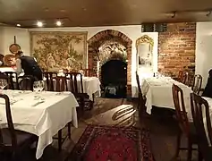 Fem små hus (Swedish for "five small houses") is a classic restaurant in Gamla stan in central Stockholm, Sweden, located in the Python block in the corner of Nygränd 10 and Österlånggatan 15. The restaurant serves traditional Swedish cuisine with a French influence. In winter the restaurant is only open on evenings but in summer it also serves lunch.[1]