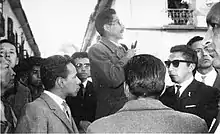 In 1962 Fernando Bravo became seriously ill. In spite of his fragile state of health, he continued with the union struggle of the teachers that turned into a strike in 1962. As the leader of the teachers of La Paz, Fernando organized and led the strike. "He served as Chairman of the Strike Committee ... The doctors prescribed absolute rest. But he could not agree to that and would not abandon the fight. Disobeying the doctors, he continued to lead the strike."[64] Meanwhile, "in this movement new methods of struggle were introduced, such as 'lightning rallies' in plebeian neighborhoods and throughout the city. The objective was to incorporate the population into strike for the teachers', that is, to link the strike to the population itself. The success of the strike was due especially to this social bond", writes Elsa Cladera de Bravo.[65] The "lightning rallies" consisted of groups of teachers who suddenly appeared in a certain place and start holding forth loudly, like traveling minstrels in the Middle Ages. After this quick appearance, it would be the turn of another group in another place. The "lightning" rallies held by the strikers' actions groups were synchronized in such a way that when one group had finished its mission, another group started elsewhere. This made police vigilance impossible. The police could not know where the different action groups would show up and could not be at all the different locations where the 'rallies' were held.[66][67]