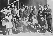 Oruro, the house at the corner of Ayacucho and Presidente Montes streets ca 1947. Back row, from left: Edwin Moller, Miguel Alandia Pantoja, Guillermo Lora, Elsa Cladera de Bravo, Leticia Fajardo, Ernesto Ayala Mercado, Humberto Salamanca, Oscar Mendoza, Nelson Capellino, Emilio Pérez, unidentified. Front row, from left: Filomena Ocampo, with glasses: Fernando Bravo James, Nadezhda Bravo Cladera,Jorge Salazar Mostajo,unidentified. (Photo: Fernando Bravo James Archives (FBJA))