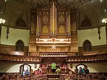 In 1884, the joint funerals of the mother of President Theodore Roosevelt and of his first wife, Alice, were held here. In 1910, the church's historic sanctuary was the site of the wedding of TR's son, Theodore Roosevelt Jr., an event attended by the former president, and 500 of his former Rough Riders.[6] It was also the site of the 1965 recording of A Concert of Sacred Music by Duke Ellington and his orchestra, broadcast nationally by CBS television in 1966,[7] and of dance legend Frankie Manning's "rollicking three-hour memorial service" in 2009.[8]