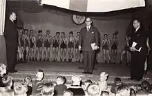 President of the Finnish Workers' Sports Federation and a member of the Finnish Olympic Committee Mr Olavi Suvanto at the 20th anniversary of athletics club Reposaaren Kunto in Pori, Finland, 1952.