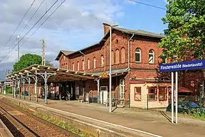 Finsterwalde (Niederlausitz) station is a railway station in the municipality of Finsterwalde, located in the Elbe-Elster district in Brandenburg, Germany.