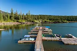 The marina at the Fish Lake Resort in the Cascade Mountains.