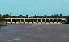 The Fitzroy River Barrage is a mid-river dam system constructed on the Fitzroy River in Rockhampton, Queensland, Australia which separates the tidal river into saltwater and freshwater sections.[1] It was designed to dam the river, enabling a permanent water supply to be stored for the city and its surrounding communities as well as providing an agricultural water supply for registered rural users.[1]