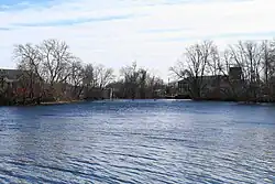 The Five Mile River is a 23.5-mile-long (37.8 km) river located in Connecticut's northeast corner and flows through the towns of Thompson, Putnam, and Killingly. The original Nipmuc name was Assawaga, meaning "place between" or "halfway place". The Assawaga received its English name from the fact that the first land laid out upon it was "supposed to be about five miles from" Woodstock, Connecticut. The Five Mile is a tributary of the Quinebaug River and is part of the Thames River watershed. Its source is Little Pond (also known as Schoolhouse Pond), close to the Massachusetts border. It empties into the Quinebaug River at Danielson, near the intersection of Connecticut Route 12 and U.S. Route 6.