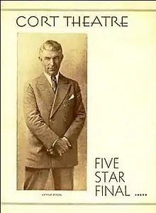 Five Star Final is a play written by Louis Weitzenkorn. The story is a melodrama about the evils of tabloid journalism. Producer A. H. Woods staged it on Broadway, where it was a hit, running for 175 performances.