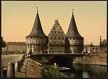 Since Philip was in Bruges, in the hands of the rebels, Maximilian attempted to negotiate, offering to dismiss members of his court that displeased the Flemish.[8] Simultaneous troubles in the Prince-Bishoprics of Liège[lower-alpha 1] and Utrecht,[lower-alpha 2] meant that the archduke could not intervene until 1484.[9] His relationship with Flanders deteriorated as the Knights of the Golden Fleece at Dendermonde deposed him as head of their Order, Bruges refused to admit the archduke into their city with a company of more than a dozen people, and the commander of the Flemish armies proclaimed himself lieutenant-general in the name of Philip the Fair.[2]: 446