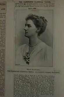 Newspaper photograph and Cambridge Classical Tripos results of Florence Stawell, 1892.