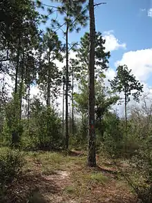 Pinus palustris along the Longleaf Pine Trail section of the Florida National Scenic Trail in the Etoniah Creek State Forest in Putnam County, Florida