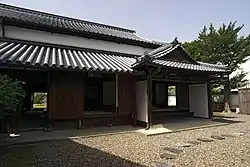 A Honjin (本陣) was an inn for government officials, generally located in post stations on highways in Edo Period Japan. Many of the honjin were actually personal residences of village and town leaders. As such, they received official designations from the government and expanded their residences to include walls, gates and other features. Because of their cooperation, the owners of the honjin also gained various special rights. General travelers, regardless of status or money, were not able to stay at honjin, which were reserved typically for daimyō on sankin kōtai to-and-from the Shogun's court in Edo, and hatamoto on official business. In the case of the Nate-juku Honjin, this was a structure located on the Yamato Kaidō, a secondary highway which connected Kii Province with Yamato Province and Kyoto. The route was used by the daimyō of Kishū Domain. The Imose family of local samurai were appointed headmen and magistrates over the post station in 1630 and constructed the honjin. The building was also the home of the wife of the doctor Hanaoka Seishū, whose biography was popularized in a novel (The Doctor's Wife) by Sawako Ariyoshi in 1966.[3]