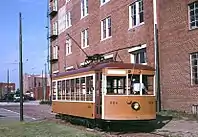In addition, an open streetcar built by the J. G. Brill Company in 1908 was acquired from the Texas Transportation Museum (in San Antonio, Texas) in 1995. It is ex-Veracruz, Mexico, No. 6.[1][18] The Fort Smith and Veracruz cars are all single-truck cars, but in 1992 FSSRA acquired the body of Hot Springs Street Railway Company car 50 (St. Louis Car Company, 1904), a double-truck car which once operated in Hot Springs.[5] The organization subsequently acquired trucks and motors for the car, and began working on restoring it to operating condition,[10] a goal that was reached in 2016. Another Birney car in the collection is ex-Kansas City 1545, built in 1919.[1]