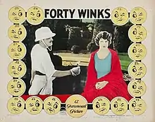 Forty Winks is a lost 1925 American silent comedy film directed by Paul Iribe and Frank Urson and written by Bertram Millhauser. The film stars Raymond Griffith, Theodore Roberts, Cyril Chadwick, William Boyd, and Anna May Wong.[1][2] The film was released on February 2, 1925, by Paramount Pictures.[3]