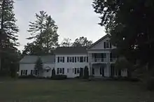 The main house consists of two blocks, built by Joel Foster, the first Foster to settle the land. Architectural evidence suggests that both were built in the 1850s, leaving open the question of where Foster's first house was located. The main block is the more northerly of the two; it has a front-facing gable with full pediment, overhanging a two-story porch supported by distinctively cut sawn supports. The southerly block, a two-story structure, has a side-gable configuration. The main block has two wide bays, with the main house entrance in the left bay; the ell is four small bays wide, and has a secondary entrance. which is flanked by shorter sidelight windows than the main entrance, and is topped by a triangular shallow pedimented hood. A 1+1⁄2-story gable-roof shed extends the house further to the south.[2]