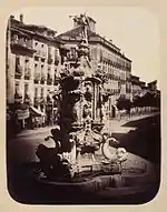 A 1864 photograph of the fountain by Alfonso Begué, then located at the Plaza de Antón Martín.