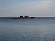 Fox Island is an island in Narragansett Bay, Rhode Island, in the United States of America. It lies between Conanicut Island and North Kingstown just south of the village of Wickford, Rhode Island. The island is a part of the town of North Kingstown. The Native Americans called the island "Nanaquonset" (also "Nonequasset" or "Sonanoxet.") The island was purchased from Native Americans by Randall Holden and Samuel Gorton in 1659.[1] In the 1860s a Christian preacher named Captain Jimmie Hammond became the first full-time resident of the island where he lived with his chickens and cat.[2] In 1880, Rev. William Pendleton Chapman, a pastor at the nearby Quidnessett Church, featured the island in his adventure book titled “Budd Boyd’s Triumph: The Boy Firm of Fox Island.”[3] Various other private owners have owned the island since its first habitation. Since 2000 it has been privately owned by a corporation which uses a large wind generator on the east side of the island.[4]