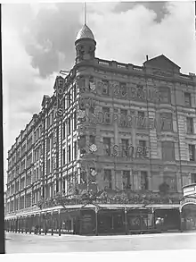 When the business expanded in the late 1880s, Gibson was joined by William Dougal and by his nephews Samuel Gibson and John Maclellan. He opened a hardware department and then rearranged the store in 1889, reputedly modelled on the Parisian Bon Marché, creating what is said to be the first department store in Melbourne.[3] Gibson kept his store going despite the 1893 bank crashes through hard work and 'dogged determination', and began to establish his own manufacturing works. By the early 20th century Gibson's workshops produced men's clothing, shirts, ladies' underclothing, millinery, furniture, bedding and hardware, and 'Gibsonia' woollens and hosiery. The complex and the stores became one of the largest employers in Victoria, and dominated the Wellington and Smith streets area with huge red brick multi-level buildings, all designed by architect William Pitt.[4]