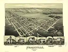 Frackville is a borough in Schuylkill County, Pennsylvania. Incorporated in 1876, Frackville is located at the intersection of Interstate 81 and Pennsylvania State Route 61 is located near the borough, which is approximately 102 miles (164 km) northwest of Philadelphia and 60 miles (97 km) southwest of Scranton. Frackville is named for Daniel Frack, an early Anglo-American settler.[3]