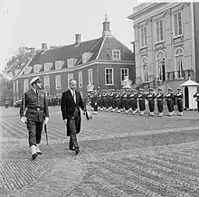 van der Straten-Waillet as the Belgian ambassador to The Netherlands at Huis ten Bosch in 1966