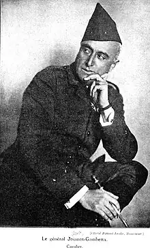 By the start of the First World War in 1914 Jouinot-Gambetta was a colonel.[1] He was appointed a commander of the Legion of Honour on 30 January 1915.[4]:1 In 1917 Jouinot-Gambetta was appointed to command a brigade of three regiments of Spahis and Chasseurs d'Afrique with the Armée d'Orient on the Macedonian front.[1][7]