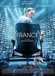 France is a 2021 comedy-drama film written and directed by Bruno Dumont. It stars Léa Seydoux, Blanche Gardin, Benjamin Biolay, Emanuele Arioli, Juliane Köhler, Gaëtan Amiel, Jewad Zemmar and Marc Bettinelli.
