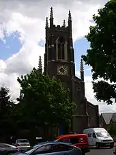 Liverpool lacked a cathedral. The diocese, founded in 1880, had a "pro-cathedral" in the form of the parish church of St Peter's, Church Street. It was unsatisfactory, being too small for major church events, and, in the words of the rector of Liverpool, "ugly & hideous".[18] In 1885 there had been a proposal to construct a purpose-built cathedral worthy of the city, but the chosen site turned out to be unsuitable.[19] Ryle, believing that the considerable expense could be better used elsewhere, supported the project only half-heartedly and it was shelved.[20]