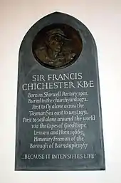 A memorial plaque to Chichester was unveiled at the family home at 9 St James's Place, SW1 in September 1993.[10]