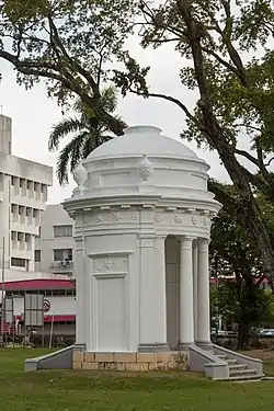 The Francis Light Memorial is a memorial about Francis Light in George Town, Penang, Malaysia. The memorial, located underneath the dome, reads: "In memory of Francis Light ESQ who first established this island as an English settlement and was many years governor. Born in the county of Suffolk in England and died October 21st, 1794. In his capacity as governor, the settlers and natives were greatly attached to him and by his death had to deplore the loss of one who watched over their interests and cares as a father."[1]