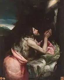 Francisco López (1554 in Colmenar de Oreja near Madrid - 1629) was a Spanish painter and engraver. He was a pupil of Bartolommeo Carducci, whom he assisted in 1595 in painting for the church of San Felipe el Real at Madrid, destroyed by fire in 1718. He was appointed painter in ordinary to King Philip III of Spain. In 1603, he painted a series of paintings representing the victories of Charles V in the King's dressing-room at the Pardo Palace. He also etched the third, sixth, and seventh plates for Vincenzo Carducci's Dialogues on Painting. He also painted Saint John the Baptist (107 x 86 cm) which is now at the Real Academia de Bellas Artes de San Fernando.