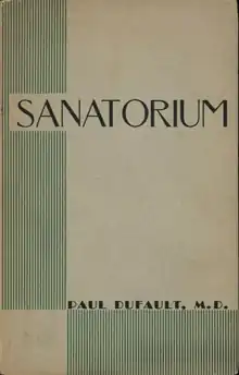 Another example of the period that merited mention was Sanitorium by Dr. Paul Dufault. A fictionalized account of his own experiences, the novel, set in Rutland State Sanatorium in Rutland, Massachusetts, was described in Montreal's Le Jour as a "roman médical" (medical novel), the first of its kind to come out of the Franco-American diaspora, which would later find echos in this theme in novels like Robert Cormier's I Am the Cheese. However, in contrast to psychological institutions, Sanatorium finds protagonists in patients in a tuberculosis ward, a subject that its author knew well as a medical doctor, advocate, and former patient of the disease himself.[29][30] Working at the first state sanatorium established solely for the purpose of treating the disease, and as the only Québécois member of its medical staff, he would write in English for the New England Journal of Medicine, and published the French-language novel at his own expense as a way to draw attention to the scourge both in the States and the Provinces.[31] Besides its subject matter and setting, the novel is also unique in that its protagonist, Dr. Lanoie, in his dialogue, reflects on the issues of social questions in both Quebec and the United States, describing the work of medicine as literally and metaphorically "l'œuvre de reconstruction".[2][32]