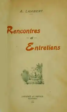 Rencontres et entretiens ("Meetings and Interviews") by Adélard Lambert contained vignettes of New England Franco-Americana, but despite its format was published as a book rather than initially as a feuilleton[20]:244